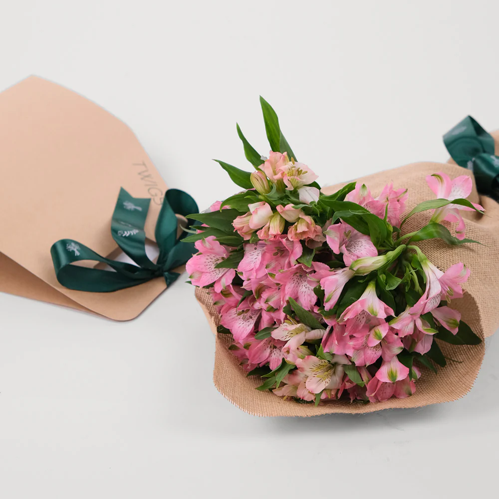 Delight in the beauty of Alstroemeria Pink Flowers with our lovely bunch. These pink blooms are a symbol of grace and appreciation, perfect for brightening up any day. Whether it's a gift or a treat for yourself, enjoy the simple pleasure of nature's beauty. Order now and experience the joy of pink perfection