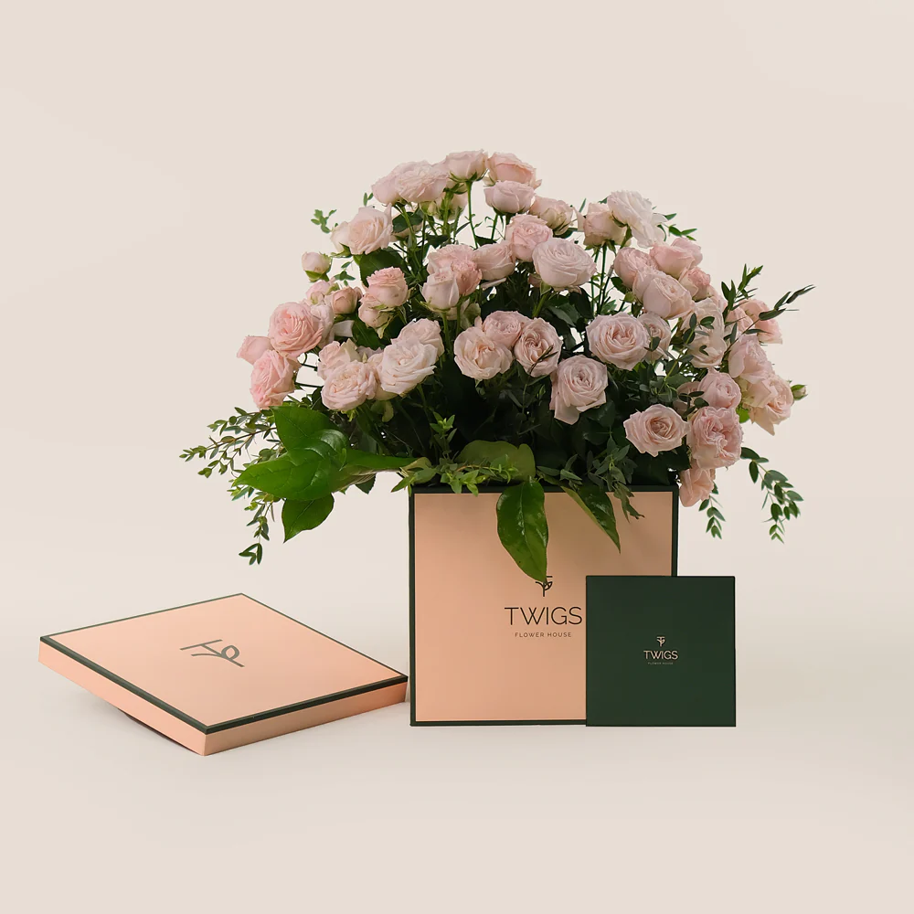 TWIGS’ flower box, available in Warm Beige or TWIGS Green, enhances the presentation with a sophisticated touch, creating a truly memorable gifting experience. With the easiest online ordering, fast delivery, and freshly sourced blooms, this arrangement offers a seamless and luxurious way to celebrate life’s special moments.