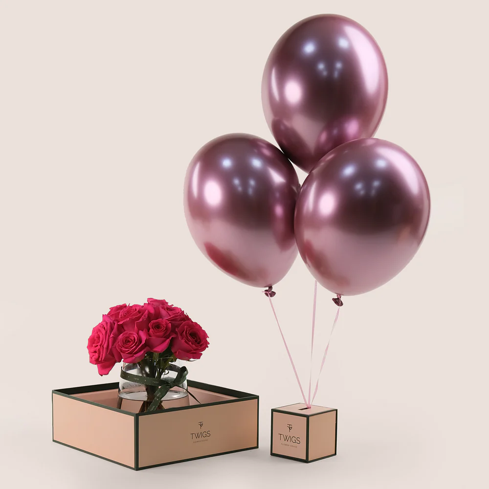 Fuchsia Luxe Bundle – Petite Roses & Balloons– The Most Elegant Gifting Option