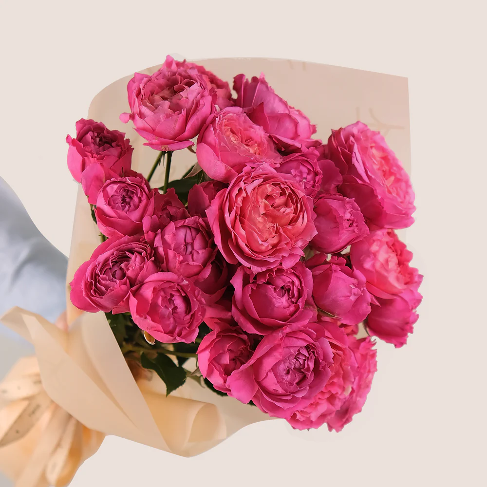 Fuchsia Passion – Juliet Roses Cone Bouquet – A Bold and Luxurious Floral Statement