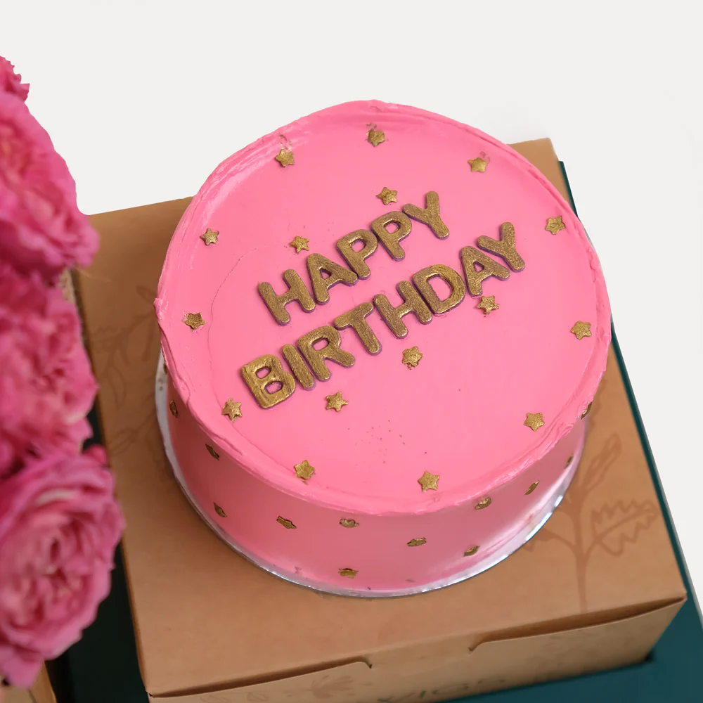 Celebrate a birthday in style with our Happy Birthday Flowers and Cake Tray combo. This charming combination features a stunning bouquet in a pink color scheme, perfectly complemented by a delicious cake. It's the perfect way to make someone's special day even more memorable.