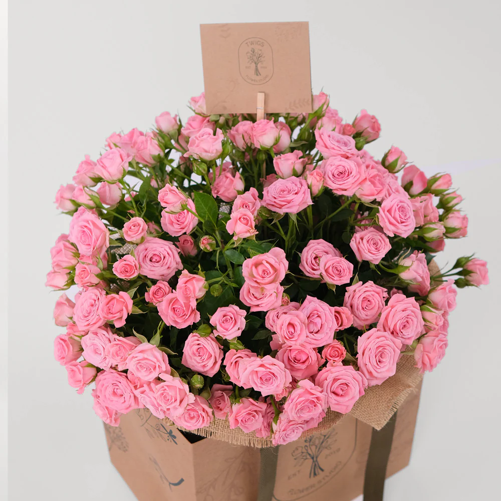 Indulge in the delicate beauty of our Odilla Spray Roses Bouquet, elegantly presented in our iconic Signature Bag. Each petite spray rose, a symbol of grace and charm, is carefully selected to create a stunning arrangement. Whether it's a personal treat or a heartfelt gift, this bouquet in our signature bag is a delightful expression of floral elegance. Order now and let the enchantment of these roses brighten your day.