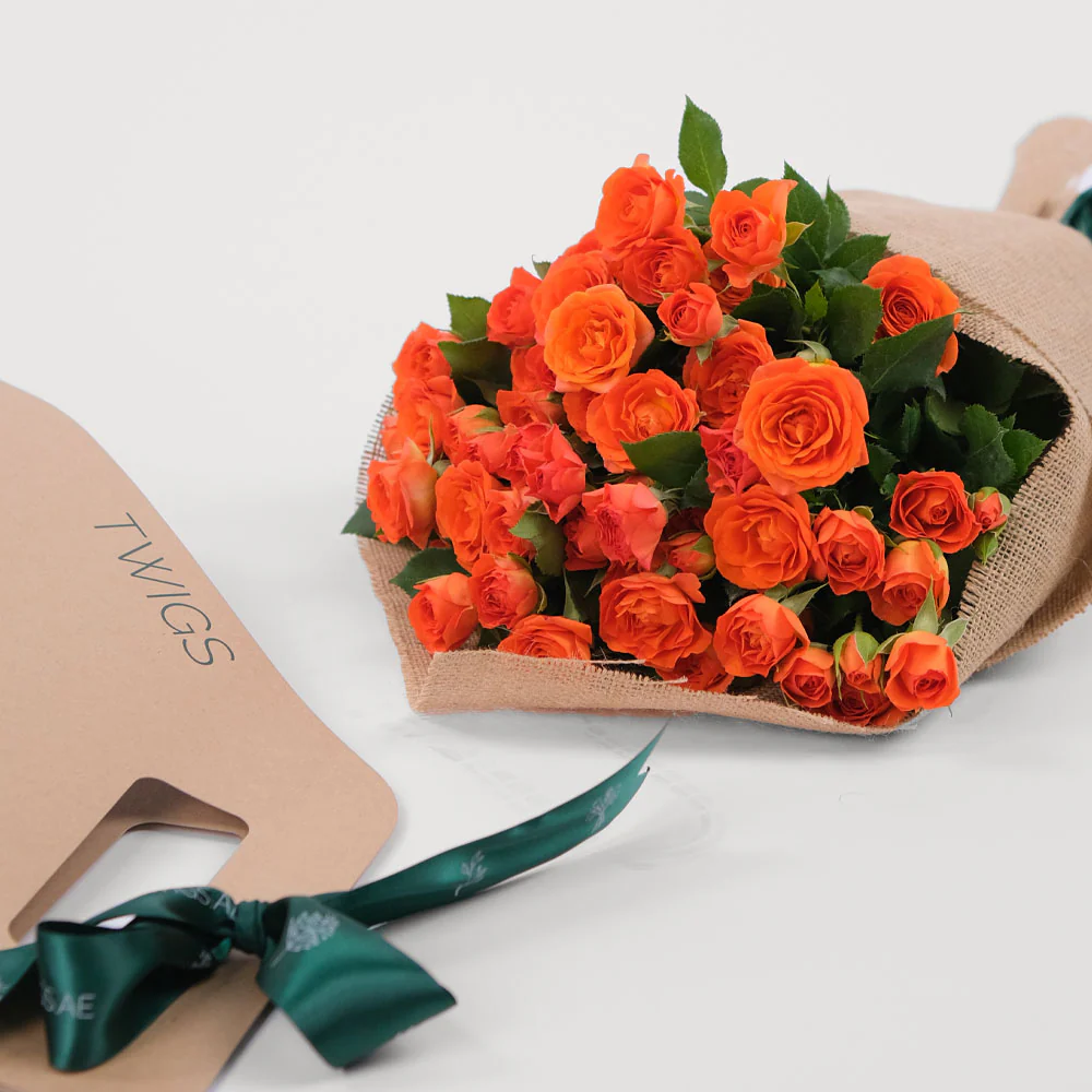 Embrace the lively beauty of our Orange Spray Roses Flower Bunch. Each vibrant spray rose bursts with vivacity, ideal for infusing a pop of color into any setting. Whether you're treating yourself or delighting someone special, this bunch is a spirited expression of floral charm. Place your order now and let the energy of these roses add vibrancy to your day.