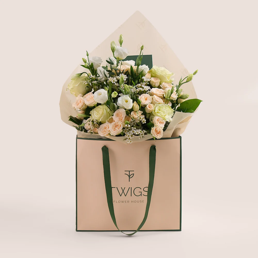Delivered in our signature TWIGS bag, available in Warm Beige or TWIGS Green, this bouquet is as thoughtfully presented as it is beautiful. Please note, as each flower is freshly sourced, natural variations in shade may occur, but we guarantee the highest quality for a refined and memorable presentation every time.