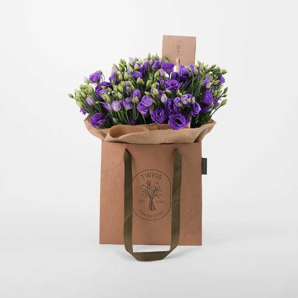 Embrace the gentle elegance of our Purple Lisianthus Bouquet, carefully presented in our iconic Signature Bag. Each purple lisianthus bloom exudes grace and charm, ready to add a touch of sophistication to any special moment. Whether it's a personal treat or a heartfelt gift, this bouquet in our signature bag is a lovely expression of floral allure. Order now and let the timeless beauty of these lisianthus blooms enhance your day.
