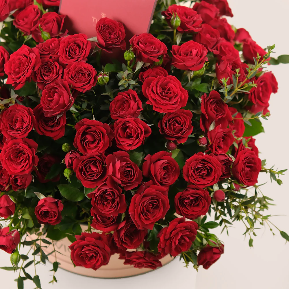 Celebrate love in its purest form with Pushkin’s Love, a breathtaking arrangement of luxurious red spray roses known as Pushkin, elegantly styled in TWIGS’ Grande Round Flower Box. This opulent floral display is a tribute to deep passion and devotion, making it a perfect anniversary gift or a romantic surprise for someone special.
