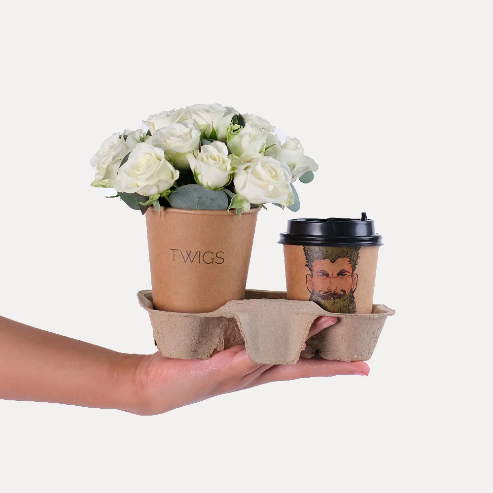 -70%Welcome Back Vanilla & Chocolate Cup Cake & White Spray Roses Flowers Combo—