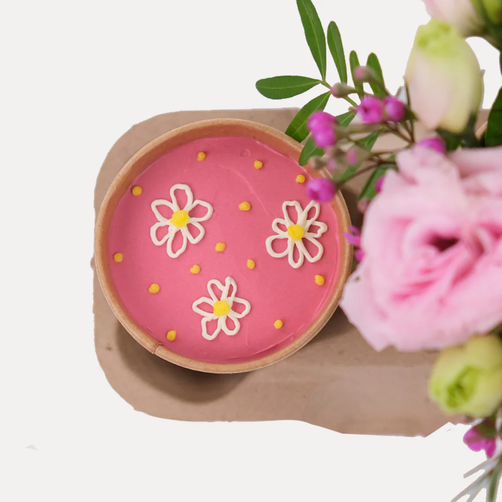 Celebrate joyously with Cake in a Cup & Pink Flowers Combo—a perfect blend of sweet indulgence and vibrant blooms. The delectable cake in a cup is paired with Pink Flowers, symbolizing good luck and joy. Elevate you day with this unique and delightful combination. Order now to make the occasion extra special with sweetness and floral elegance.Â